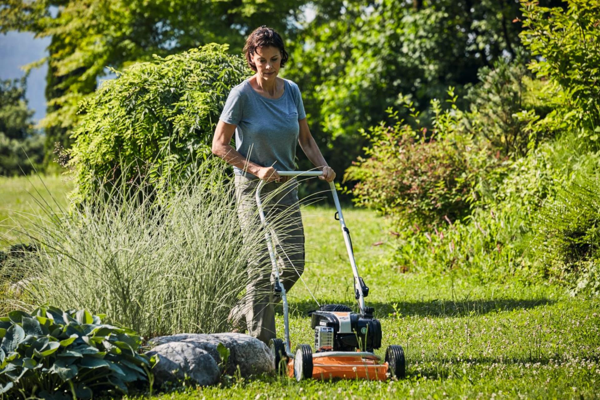 Der STIHL Benzin-Mulchrasenmäher RM 2 R mit 46 cm Schnittbreite ist geeignet für anspruchsvolle private Arbeiten, wenn Sie beim Rasenmähen direkt die Rasenfläche düngen möchten. Er eignet sich insbesondere für mittelgroße Rasenflächen bis zu 1.500 m2.