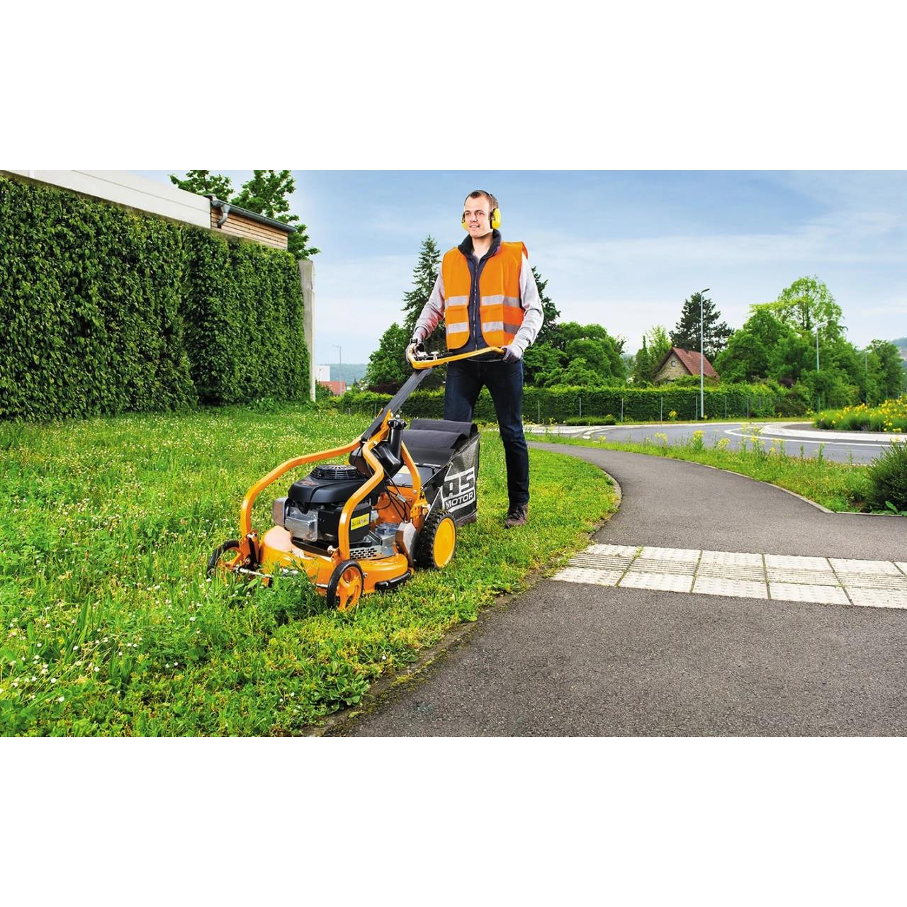 Der AS 531 bietet ein einzigartiges Merkmal: Die Sicherheitsbremse. Diese ist im Messerkupplungshebel integriert. In einer Notsituation wird beim Loslassen des Hebels die Sicherheitsbremse automatisch aktiviert und der Mäher kommt sicher zum Stopp. Durch diese Eigenschaft ist auch eine automatische Parkbremse für das Abstellen des Rasenmähers integriert. Beim Bergabfahren am Hang wirk die Sicherheitsbremse als eine Motorbremse für gleichmäßiges Fahren im abschüssigen Gelände.