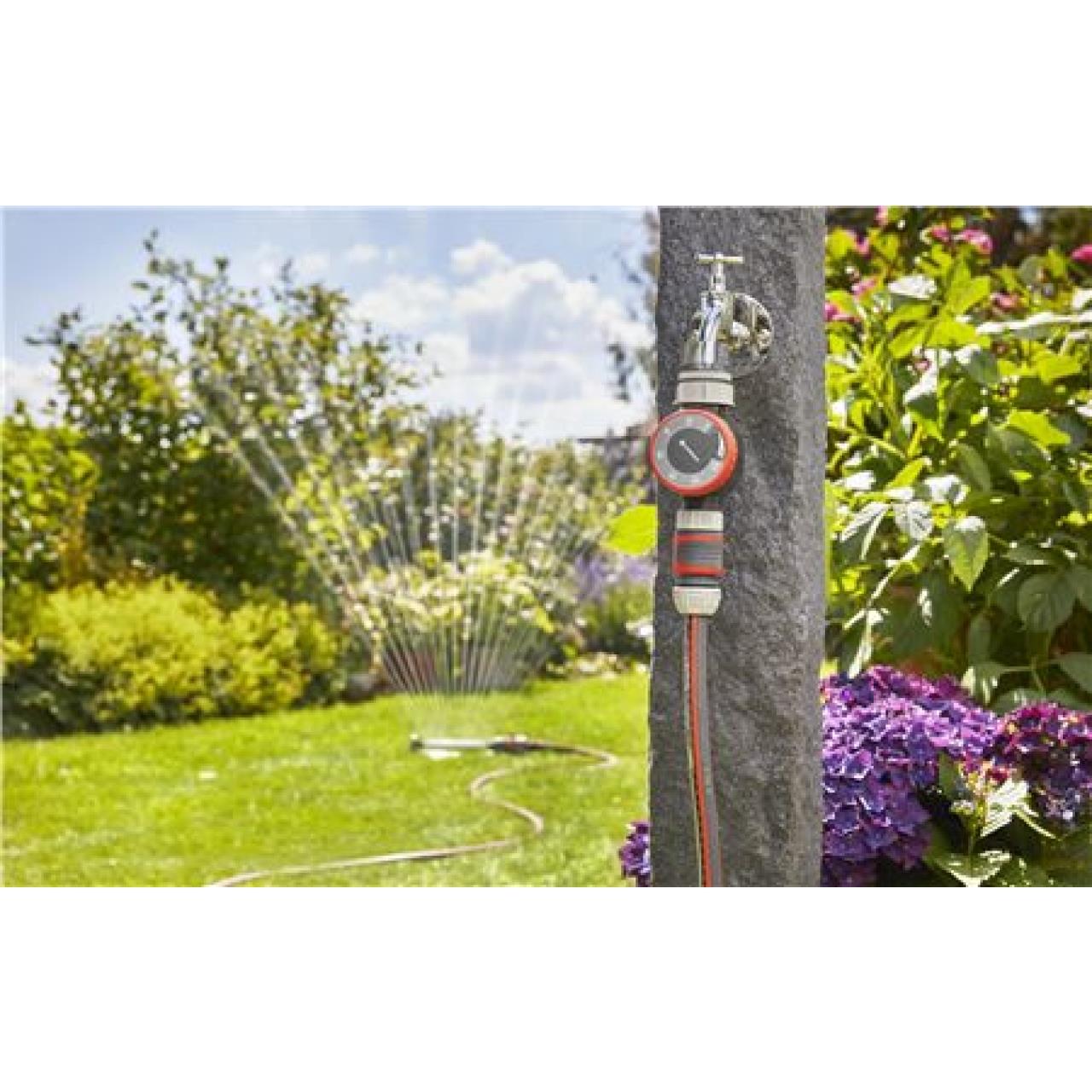 Bewässerungsuhr mit automatischer Abschaltung. Beregnungsdauer von 5 - 120 Min. sowie Dauerwasserdurchlauf einstellbar. Für Wasserhähne mit 26,5 mm (G 3/4) und 33,3 mm (G 1) Gewinde.
