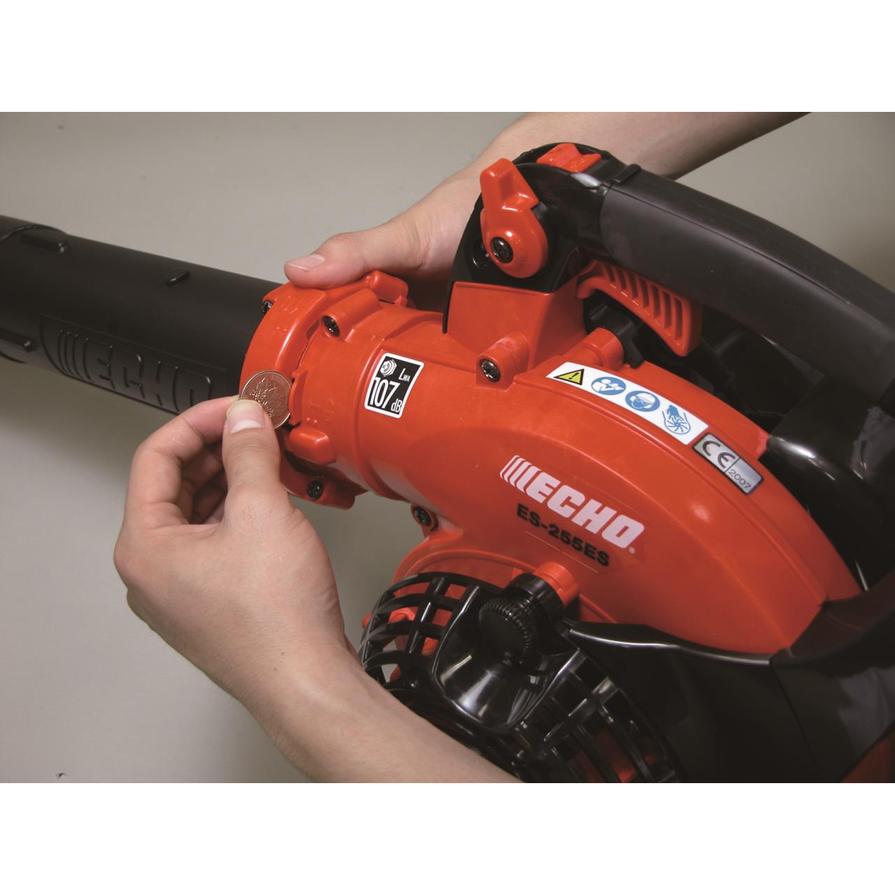 Wenn der Besen kapituliert. schlägt die Stunde des ECHO-Saughäckslers. Durch die spezielle Leitplatte und ein eigens entwickeltes Lüfterrad. packt er ordentlich zu und saugt Gras. Grünschnitt. Abfall und natürlich Laub in Windeseile kompostfertig gehäckselt in den 68 Liter fassenden Fangsack. Das Gerät ist für Rechts- und Linkshänder geeignet. Der Fangsack ist im Gegensatz zu Produkten anderer Hersteller. auf der langen Seite zu öffnen. Das Entleeren fällt so um ein vielfaches einfacher. Der ES-255ES ist zugleich ein Kombi-Gerät und kann mit wenigen Handgriffen zum Laubbläser umgebaut werden (benötigtes Zubehör ist im Lieferumfang enthalten).
