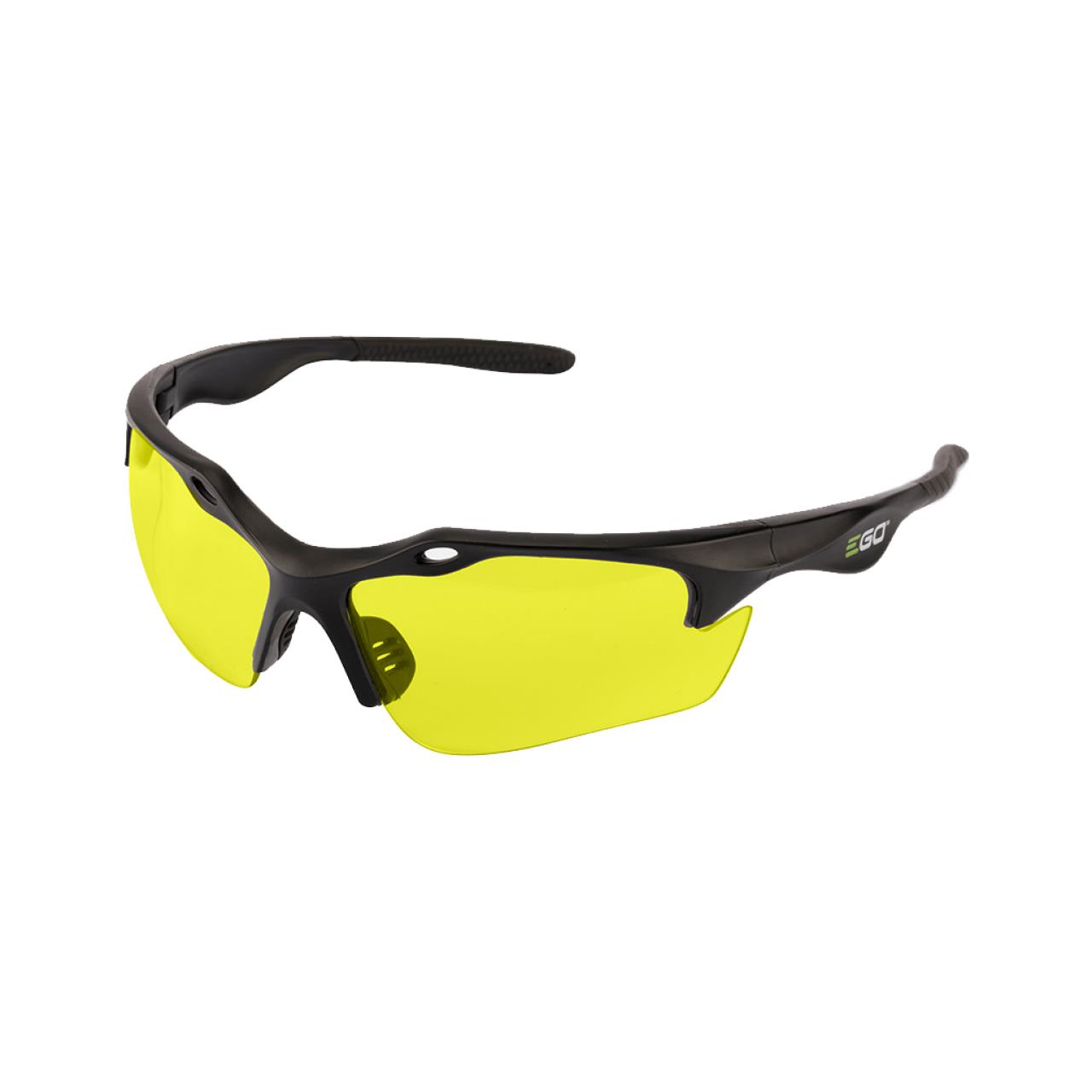 Unerlässliche Sicherheitsbrille mit gelben Gläsern.
