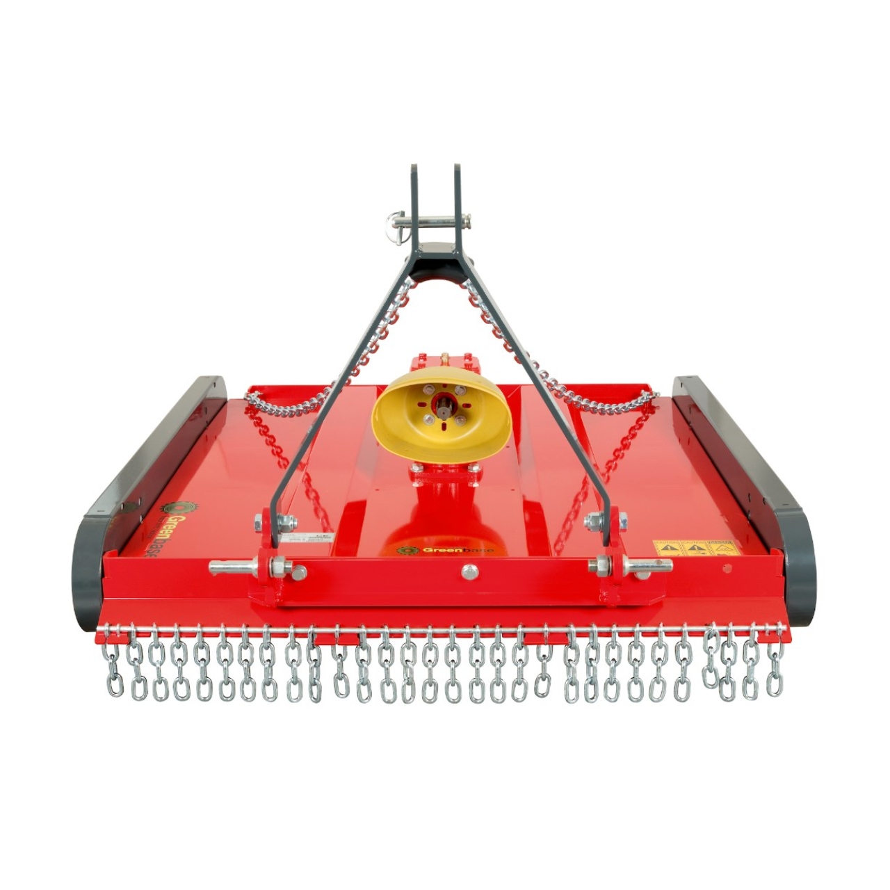 Unschlagbar in Sachen Preis/Leistungsverhältnis. Ausgestattet mit Gussgetriebe sowie einem vorne angebrachten Kettenauswurfschutz. kann der Zelos 120 optional mit 2 oder 3 schwingenden Messern im Weinbau betrieben werden. Geeignet für Traktoren von 16 bis 80 PS.